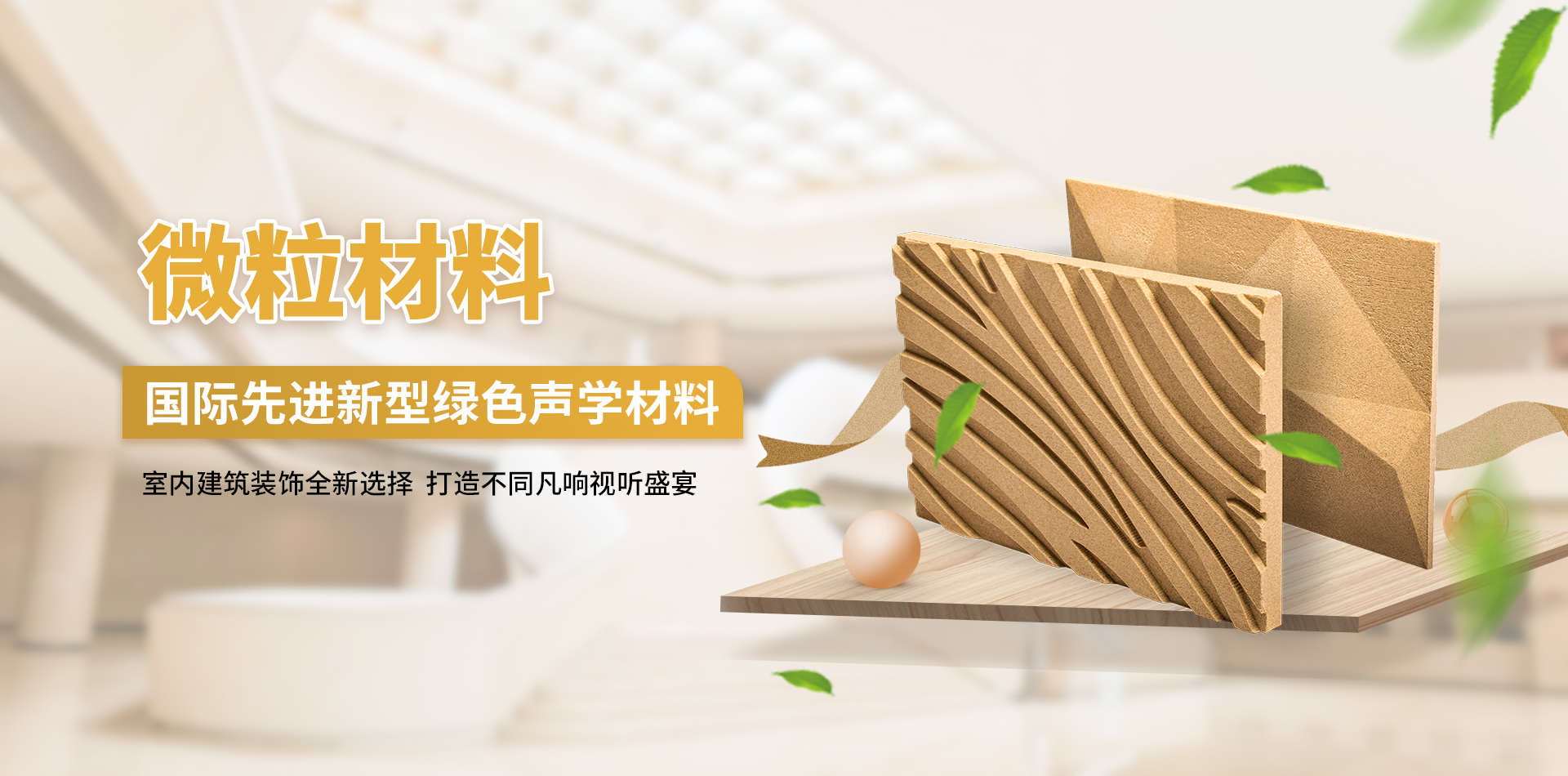 微粒材料是一種新型綠色裝飾材料,具備優異的聲學性和物理性能。該材料是以天然砂粒或經環保處理的固廢顆粒為骨料,以環保膠凝劑,通過壓振工藝,生產的具有大量相互連通的微小空隙的多孔材料。